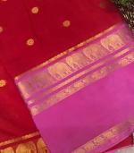 This saree features a rich body with elegant gold butta motifs and a beautifully woven border with traditional elephant designs, giving it a graceful and festive look. ✨