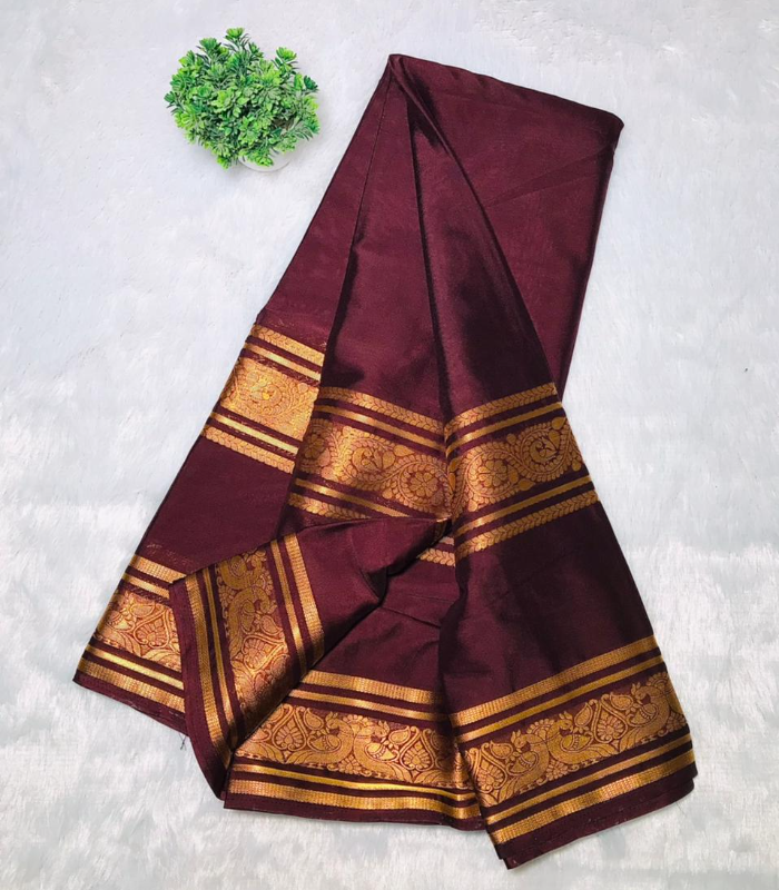 A Semi Mysore Crepe Silk Saree is a lightweight saree made from a blend of silk and synthetic fibers, inspired by traditional Mysore silk. It has a soft, smooth feel with a slightly crinkled crepe texture that gives it a graceful fall. Compared to pure Mysore silk, it is lighter, easier to drape, and more comfortable for long hours. It has a subtle shine and looks elegant without being heavy, making it suitable for daily wear, office wear, small functions, and festive occasions. It is also more affordable than pure silk and is best maintained with dry cleaning.